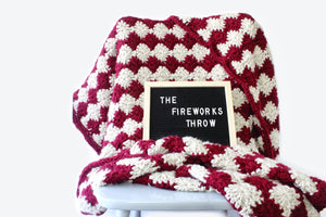 The Fireworks Throw is a great big blanket to cozy up under and watch a movie (or fireworks). It's thick and soft, made with high-quality acrylic yarn so it's easy to wash, and the stitch pattern is so pretty! It makes a wonderful gift for the holidays or just to tell that special aunt, "Thank you".