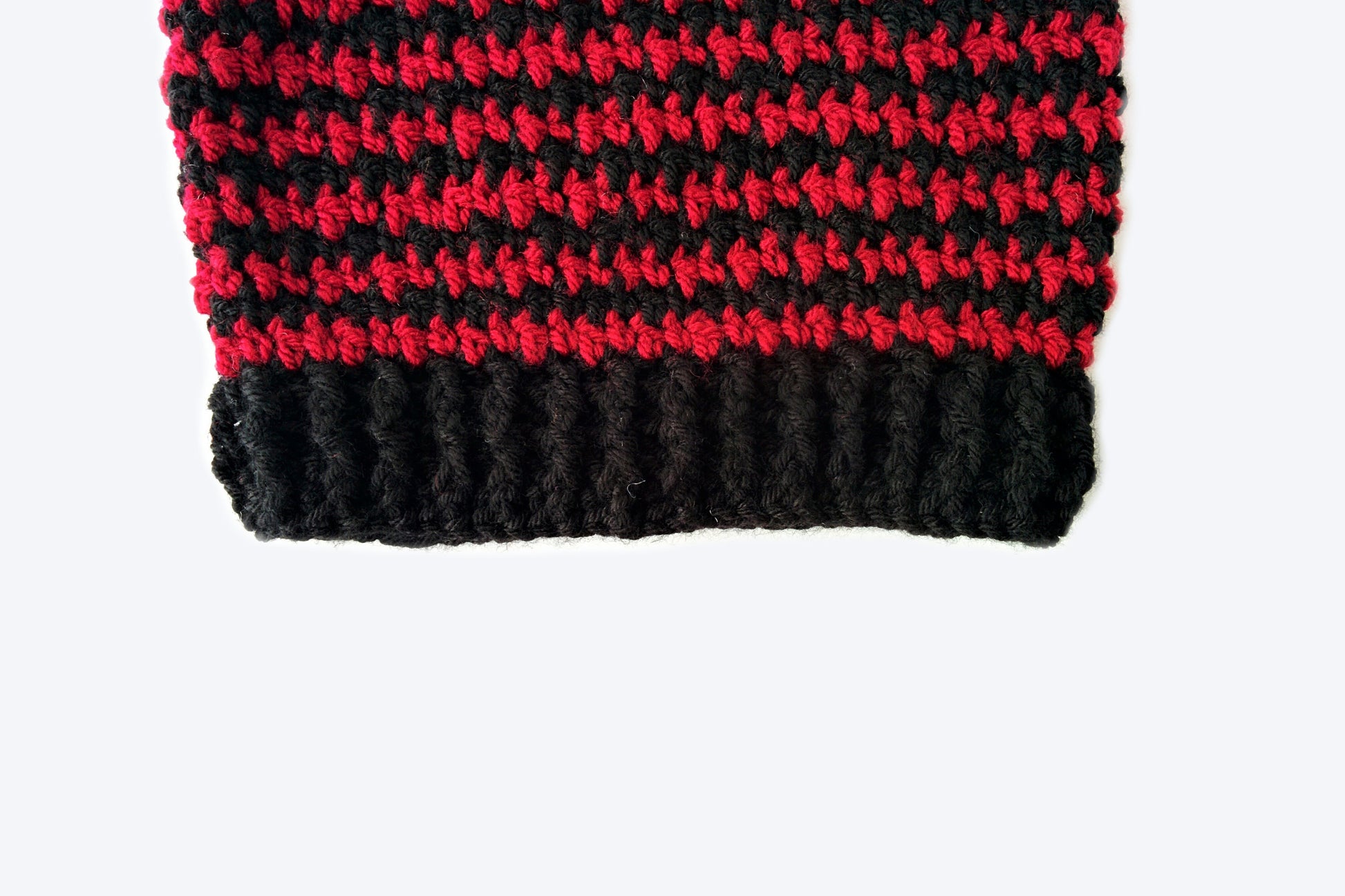 This Houndstooth beanie is perfect for guys and girls this Fall! The subtle pattern and the warm rich colors make this beanie great for brisk days out apple picking. This beanie is made using simple stitches and it creates a beautiful rustic look. The beanie is unisex and looks great on both men and women. The pattern is available as a downloadable PDF.