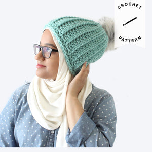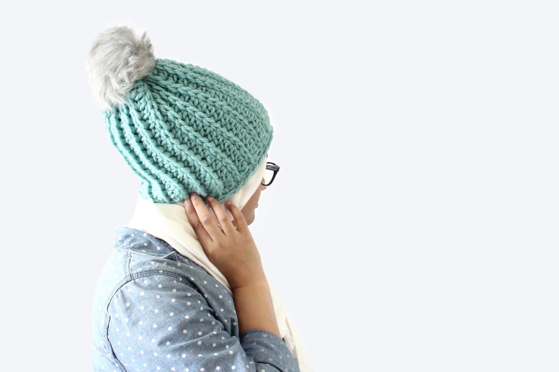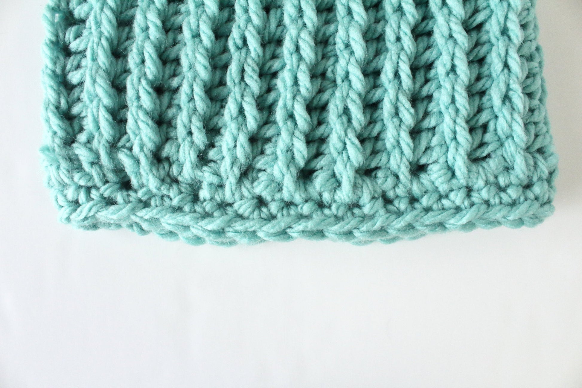 Everyone loves a super chunky beanie and this ribbed crochet beanie is no different. It's thick, warm and the textured ribbed fabric works up quickly. The beanie is made in one piece and involved no shaping unless you choose to add the optional band at the bottom. This is a one size fits all beanie because it's super stretchy and easy to wear. The faux fur pom finishes it off or you can opt for a regular yarn pom instead. Either way, this crochet beanie pattern is great for beginners, and it makes fun and easy holiday gift!