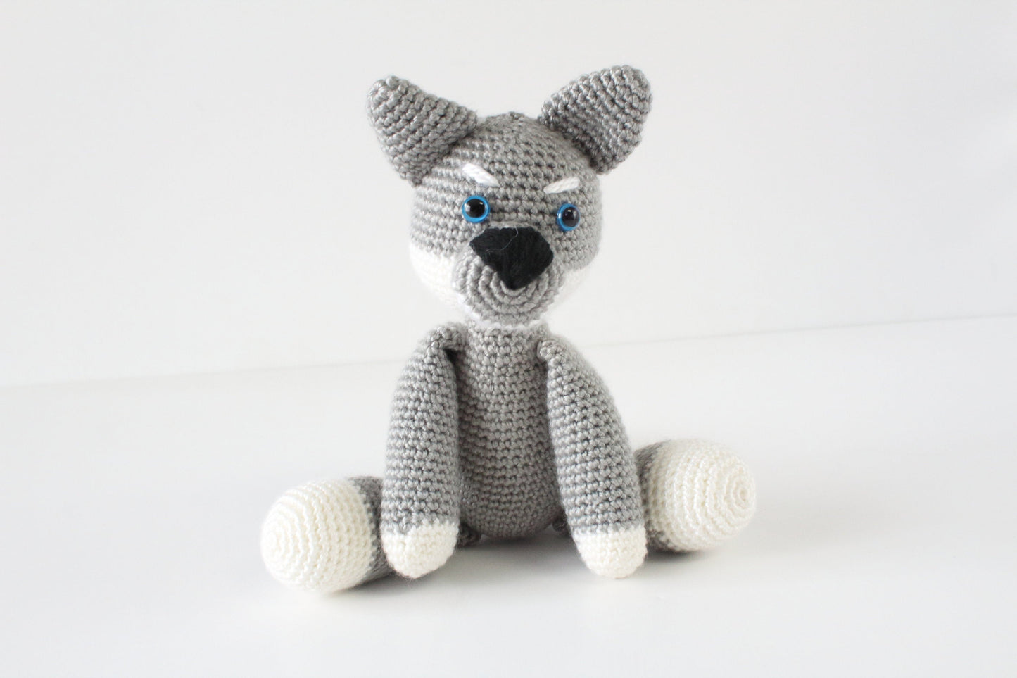 This is a pattern for a crochet wolf pup that is as easy as it is cute! At 11 inches tall, Remus is the perfect buddy for cuddles and adventures. I use single crochets and basic increases and decreases to create all the shapes needed, and then it’s just a matter of seaming them all together. I call him Remus and I hope you love him as much as I do!