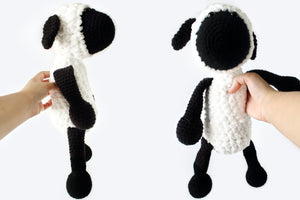 Beanies and mittens have their time, but Spring is more about toys and fun little accessories that you won't overheat in. This is an amigurumi pattern for Sammy the Sheep, and he is so easy to work up! Most amigurumi patterns use small stitches and yarn, but Sammy is made of super soft and fluffy blanket yarn, a larger hook, and he's perfect for cuddling! I used a blanket yarn for the texture which meant I also used a bigger hook. If you have a hard time with tiny hooks and stitches for amigurumi, this is going to be so much easier on your hands and it works up faster. I used worsted weight black yarn to make the face, limbs, and ears for Sammy. I also used a slightly bigger hook than I normally would for those so the fabric is looser and the legs wobble around when you move him. There's no stuffing in the legs and arms (just the ends of the feet and hands) so you won't need to worry about it showing through either!
