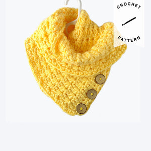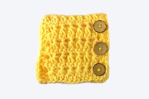 The Lemonade Scarf is perfect for cold Spring days when you just want something bright and happy to lift your spirits. This scarf is thick and chunky. It's made using super bulky yarn so that it works up quickly and easily using a large crochet hook. There are three big buttons used to embellish it at the end, but you can omit them if you wish. This scarf has fun and sunny texture that reminds me of summer and lemonade, hence the name, but it's still very cozy and warm.
