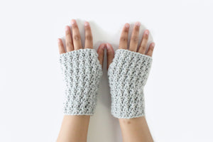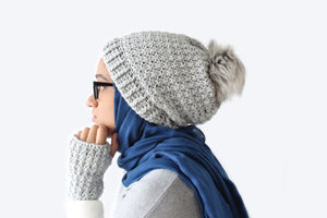 I love the way this stitch looks and when it's paired with this light-colored yarn, it looks a bit like snowflakes. It makes me think of snow days or waiting to be picked up after school and starting snowball fights with my sister. Although this stitch eats up a bit more yarn than usual, it makes for a really textured, thick, and squishy fabric that is perfect for cold weather! The pattern is available as a downloadable PDF.