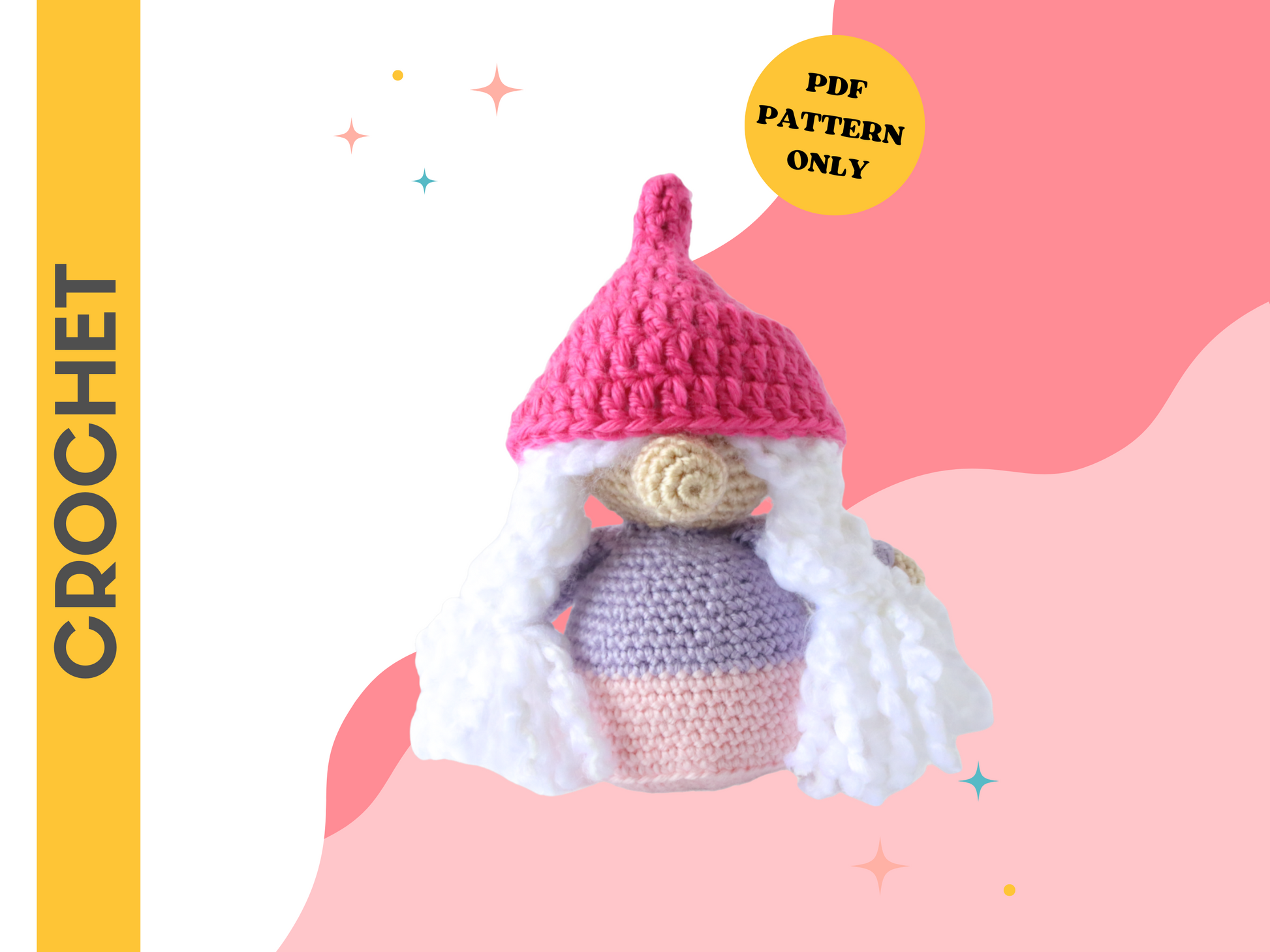 Gnorma married the love of her life and her best friend when she married Gnorman (pattern available separately) . She had a great time adventuring when she was younger, but now her favorite thing is when her kids and grandkids come to visit. She gets to make them all their favorite treats and watch the kids run around the garden, helping Gnorman tend to the plants. She loves having all her family crammed into their little cottage and going on walks that feel like adventures close to home.