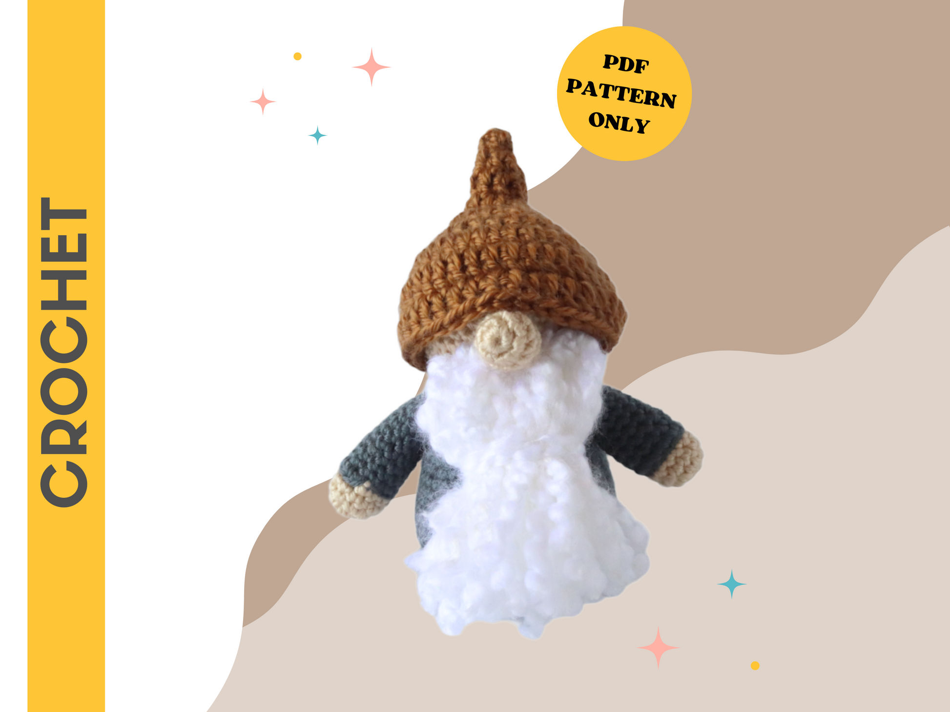 This Fall, I’ve been loving gnomes and I wanted to make a cute little gnome couple. Something about the big noses and hidden faces is just adorable. Today, I want you to meet Gnorman the Gnome! Gnorman loves planting flowers and tending to the crops he grows. Every now and then, he surprises Gnorma (pattern available separately) with a bouquet of wild dandelions and bluebells.