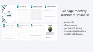 The Make it Happen: Guidebook is the monthly planner for makers! Set goals for the year, mark the important days in the year at a glance calendar and make it happen this year! This resource is a printable guide to help you get the big things done by breaking them into smaller goals and planning out what you need. Full of motivational quotes to encourage you every month!