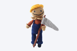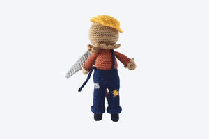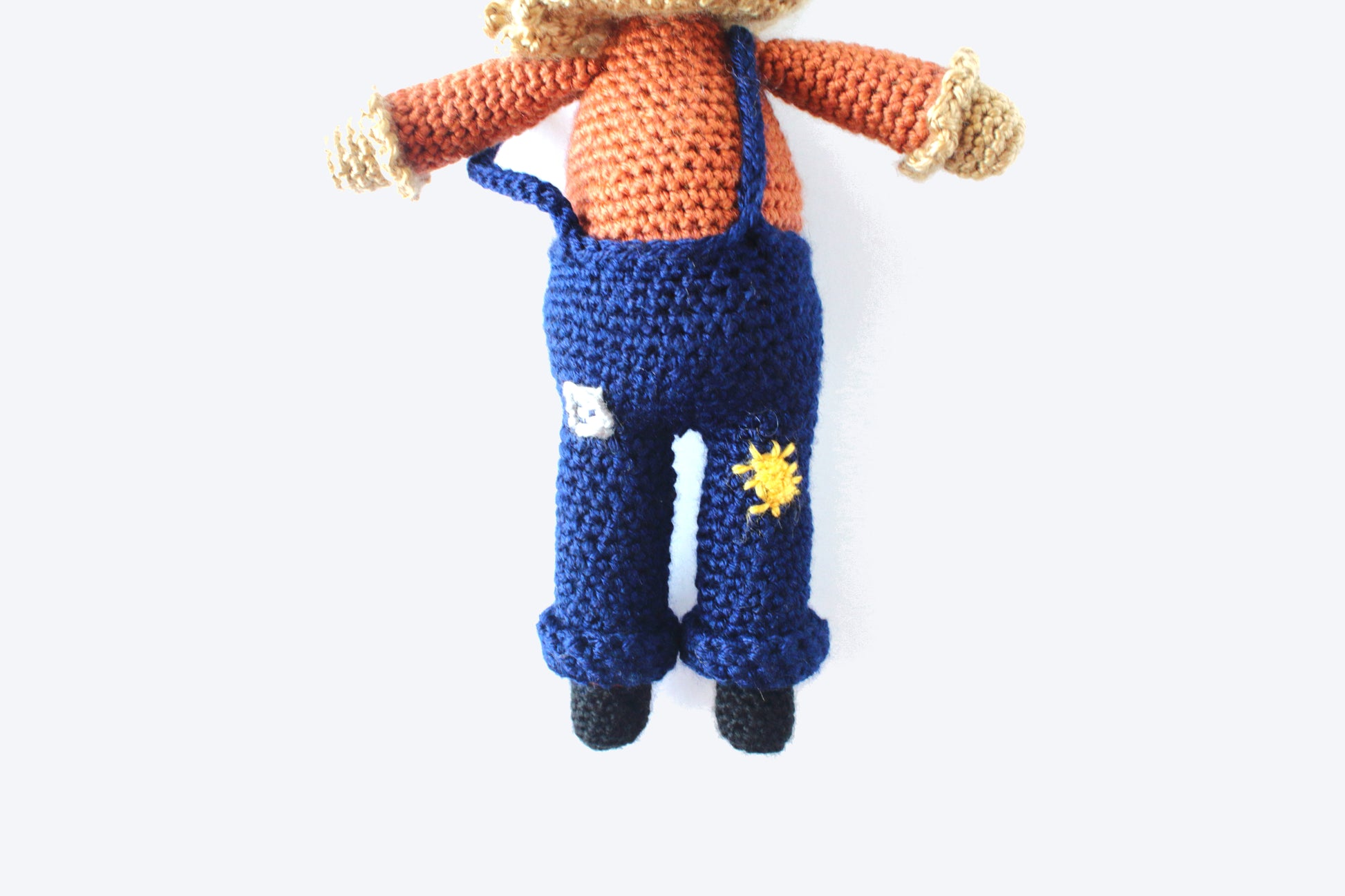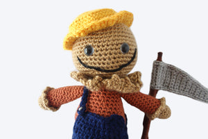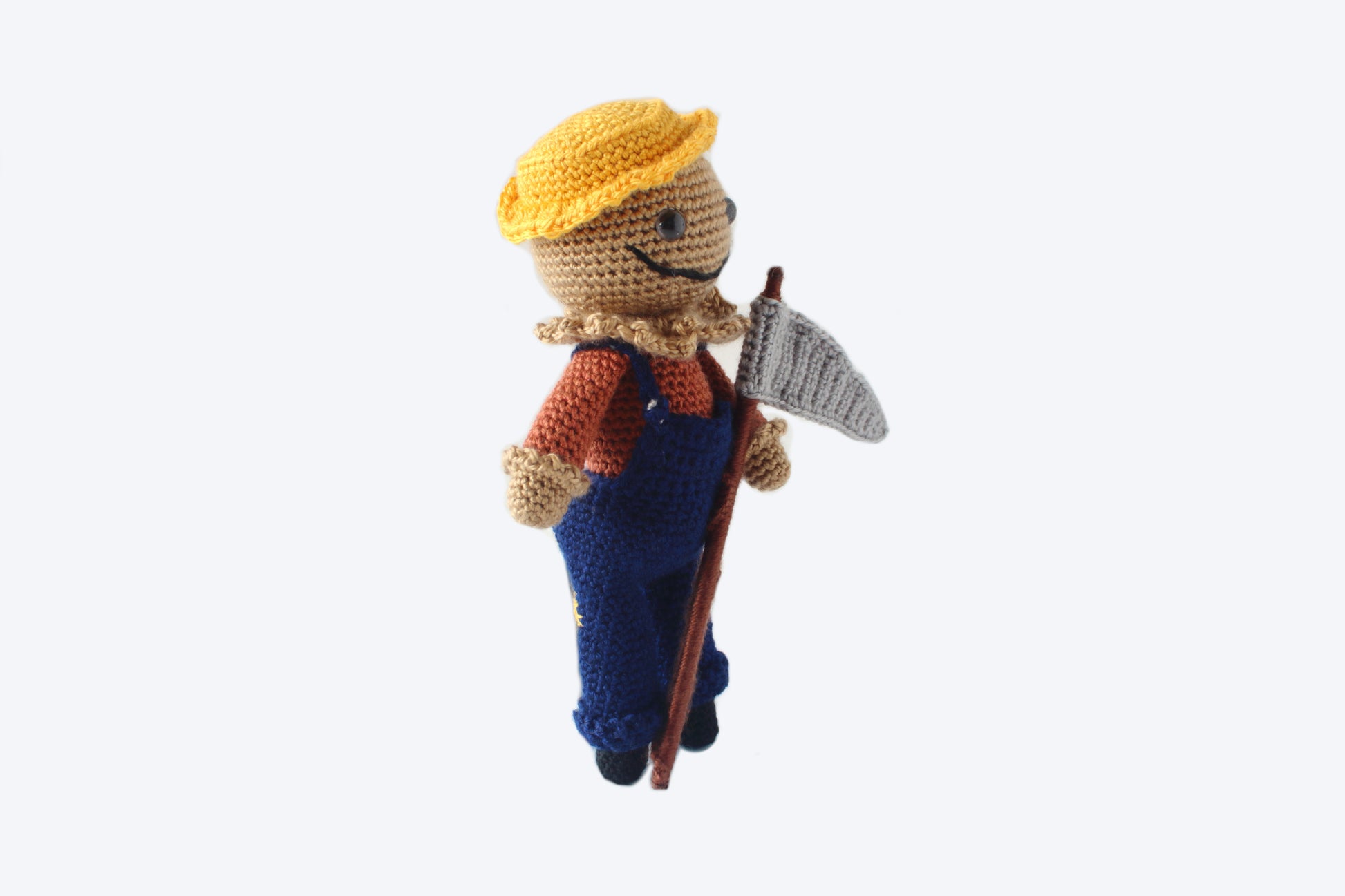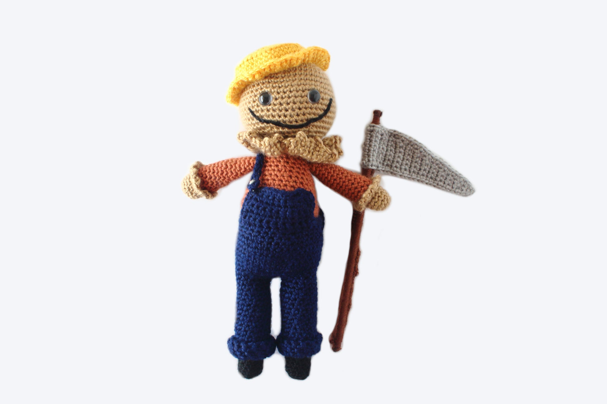 I knew I needed a scarecrow for one of my free Halloween crochet patterns this year, but I wasn’t sure how I wanted him to look. Most of my patterns for these plushies are a “creepy but cute” look, but for this guy, he kind of just looked like a farmer for the longest time. So I put him away and came back to him with a few accessories that I hope make him look like more of a friendly scarecrow! I gave him a scythe and added some patches to the overalls to make it look a little less neat, but I think the too-big smile really brought it together. All of these accessories are super easy to make though so don’t worry if you’re new to this!