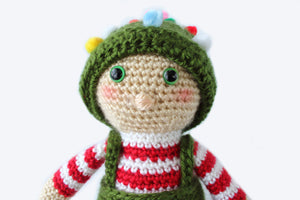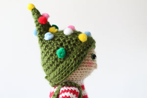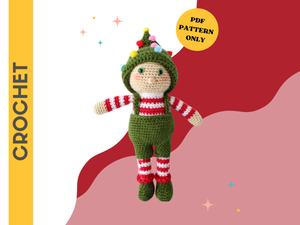 Ollie the Elf is the hardest working little elf at Santa's workshop, and sometimes he gets to help Santa deliver gifts! He's a maker and he loves to see what Christmas gifts other are working on, especially toys. Now, you can make a crochet amigurumi doll of your favorite Christmas character with this PDF crochet pattern! Whether he's tinkering away in the shop or visiting the sweetest families, Ollie's all about having fun at Christmas. He loves playing with the Christmas decor, putting ornaments on the tree (and his hat) and, sometimes, he causes a little mischief too!